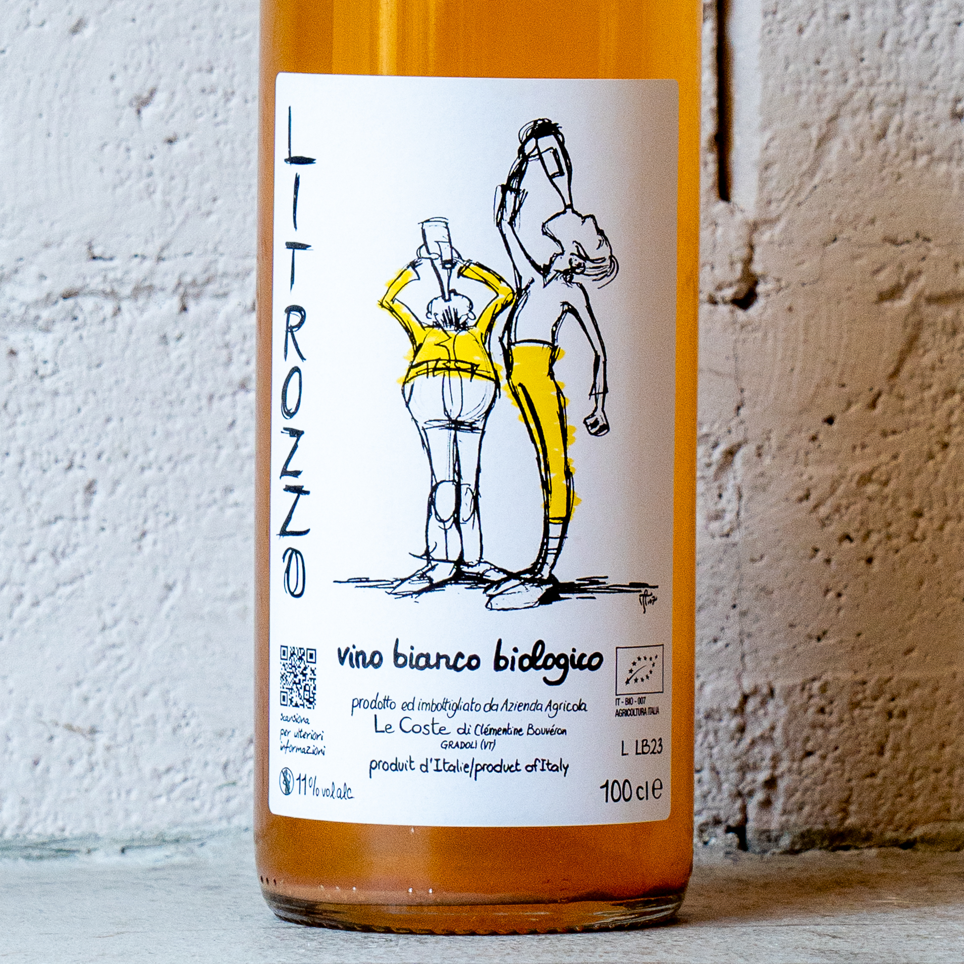 プロカーニコ主体、マルヴァジーア、その他ヴェルデッロ、ロッシェット、ロマネスコといったモンテフィアスコーネの地ブドウが中心。除梗し数日間、果皮と共に醗酵が始まってから圧搾。ブドウ品種や土地の個性ではない「飲むことの楽しさ」を表現した1リットル。